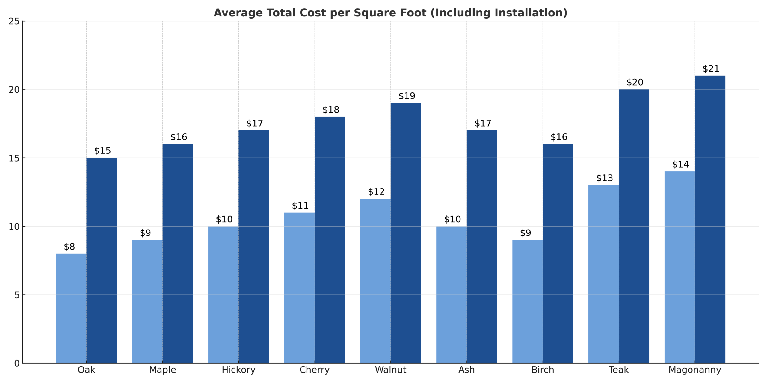 | Hardwood Species | Average Cost per Square Foot (Materials Only) | Average Total Cost per Square Foot (Including Installation) |